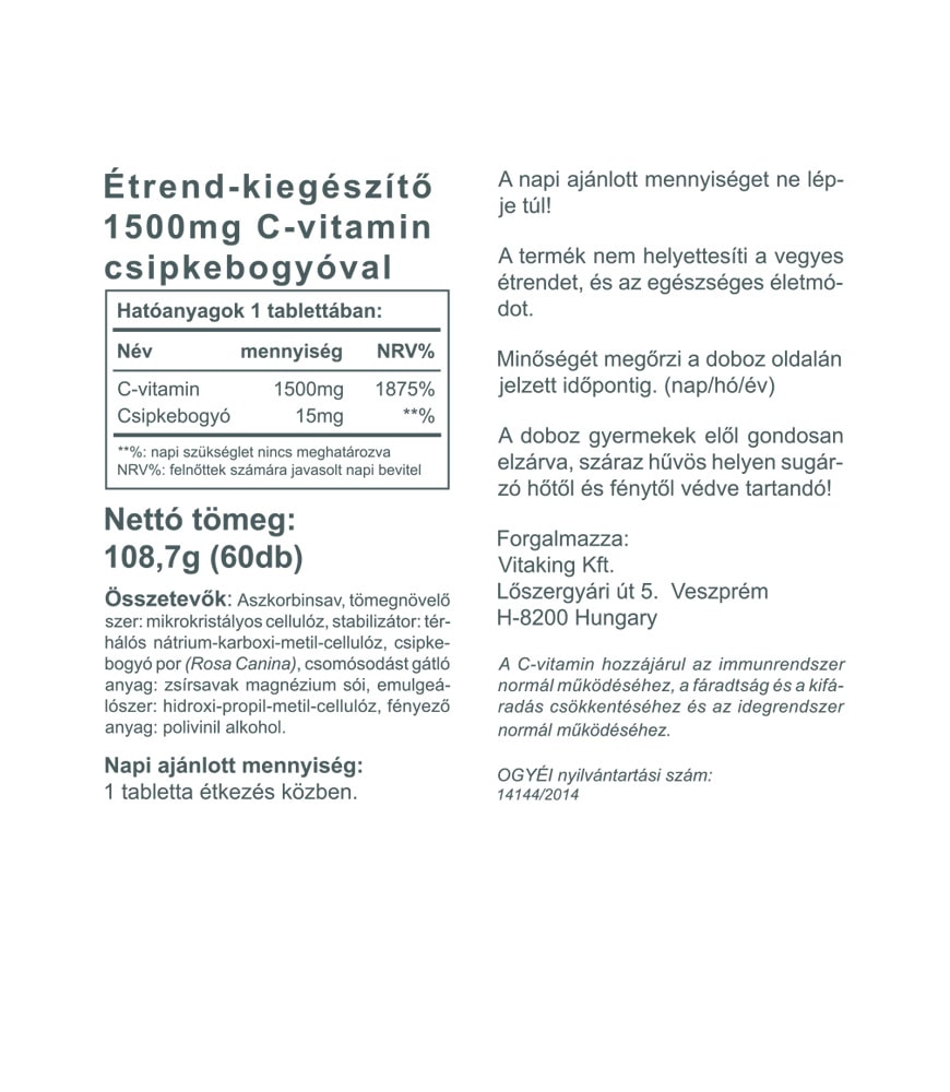 C-vitamin 1500mg + 15 mg csipkebogyó
