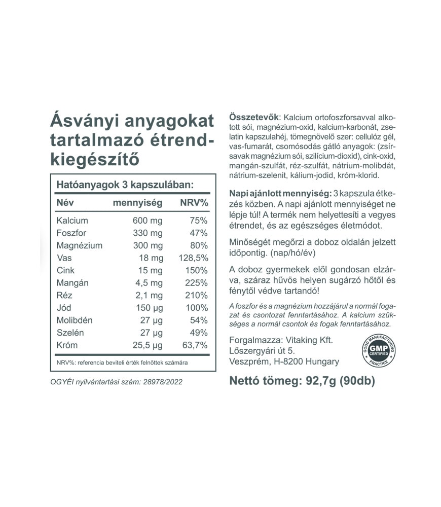A Vitaking Easy Mineral összetevői: