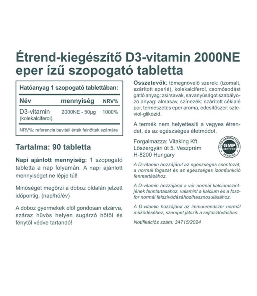 Nem szereted lenyelni a tablettákat, kapszulákat? Akkor ezt az igazán finom Vitaking D3-vitamin szopogató tablettát neked találták ki! Kóstold meg, és élvezd a finom eper ízt, valamint a D-vitamin előnyös hatásait! Amennyiben nem jutsz elegendő napfényhez, mindenképp pótold D-vitamin szükségleted ezzel a remek készítménnyel, mely a felnőttek és gyermekek körében is osztatlan sikert aratott. Az epres d3-vitamin tablettánként 2000Ne D-vitamint tartalmaz.