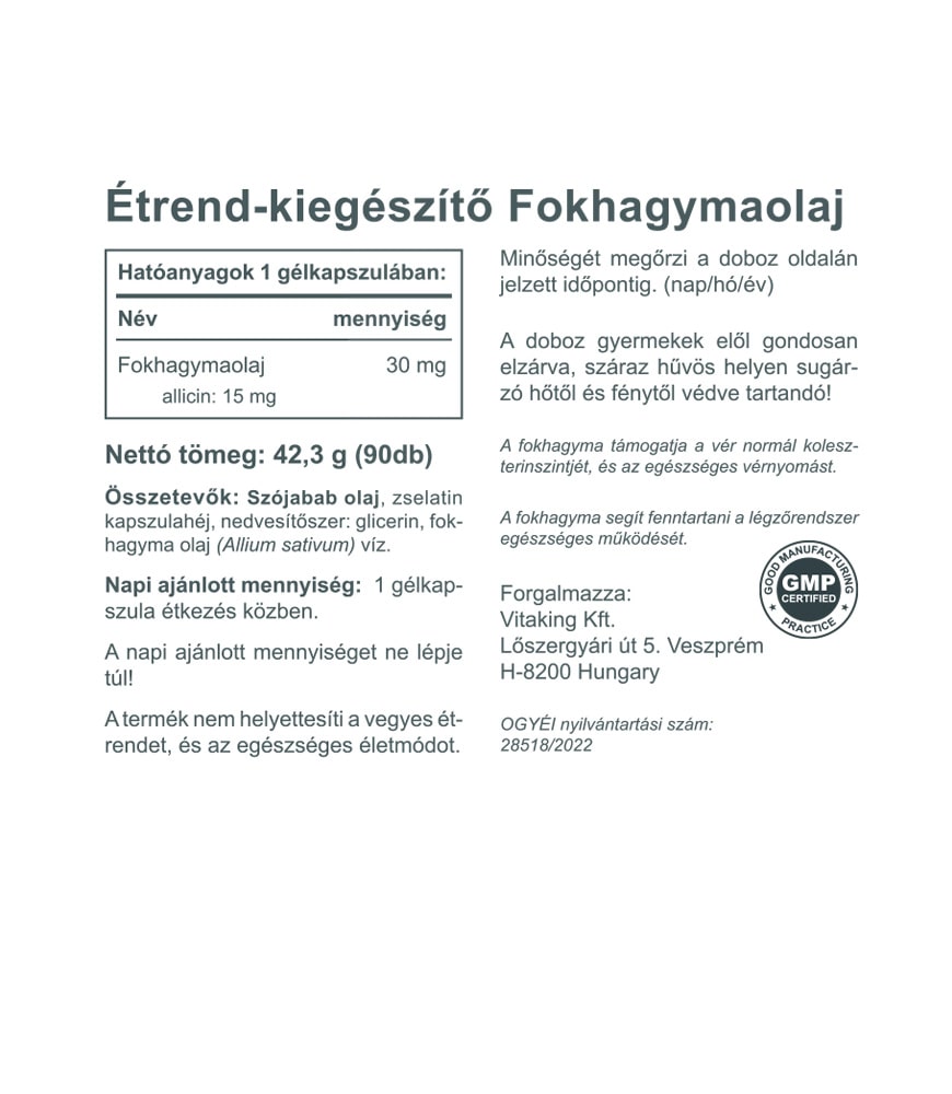 Vitaking fokhagyma olaj – a fokhagyma ereje kapszulába zárva.
