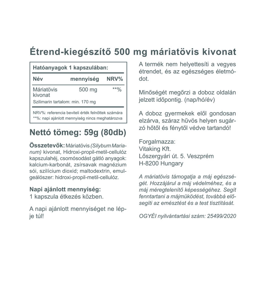 Az emberi szervezet legnagyobb mirigye a másfél kilónyi máj. Minden áthalad rajta, ami a tápcsatornába kerül, legyen az étel, ital, vegyszer vagy gyógyszer. Központi laboratóriumként a máj átvizsgálja, elemeire bontja a szervezetbe jutó anyagokat, beépíti a hasznosíthatókat és kiszűri az ártalmasakat. A máriatövis segíti a máj működését.