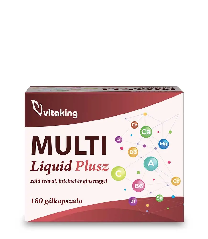 Minden Vitaking Multi Liquid Plusz tartalmazza azokat a minden napra szükséges vitaminokat, ásványi anyagokat és nyomelemeket, amelyeket fontos pótolni a nap folyamán. A vitaminokon és ásványi anyagokon kívül ginsenggel, zöld teával és luteinnel is ki van egészítve, hogy még teljesebb legyen.