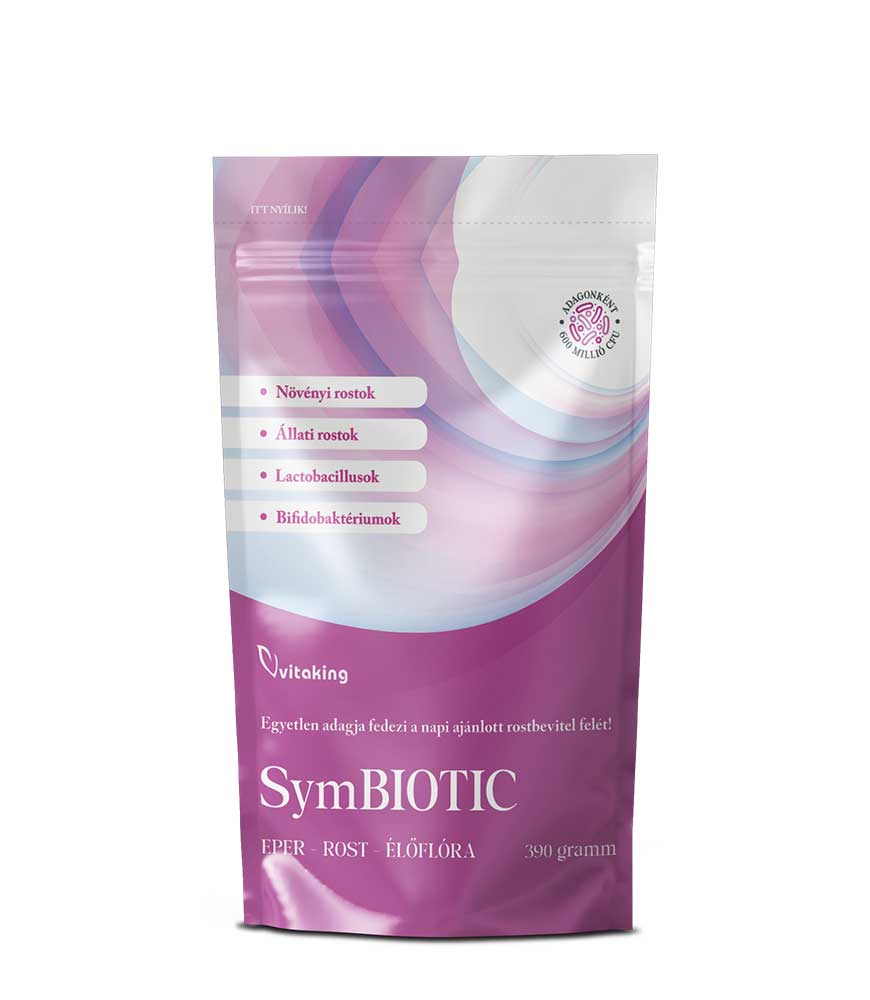 A Vitaking Symbiotic egy prémium minőségű élőflórát (bifodobaktériumok, laktobacilusok) tartalmazó italpor és élelmi rostban gazdag italpor, kellemes eper ízesítéssel. A 6 különféle baktériumot dupla bevonat védi amíg el nem jut a “lakóhelyére” azaz a vastagbélbe.