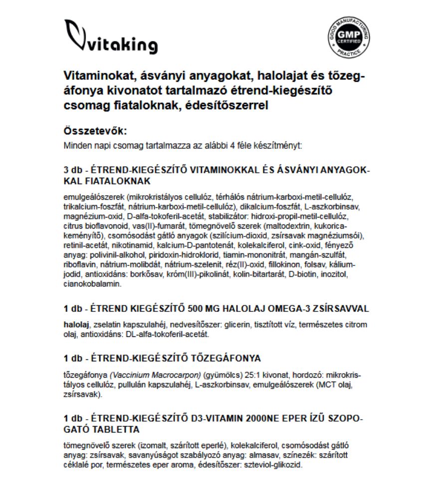 • 3 db Étrend-kiegészítő vitaminokkal és ásványi anyagokkal fiataloknak: