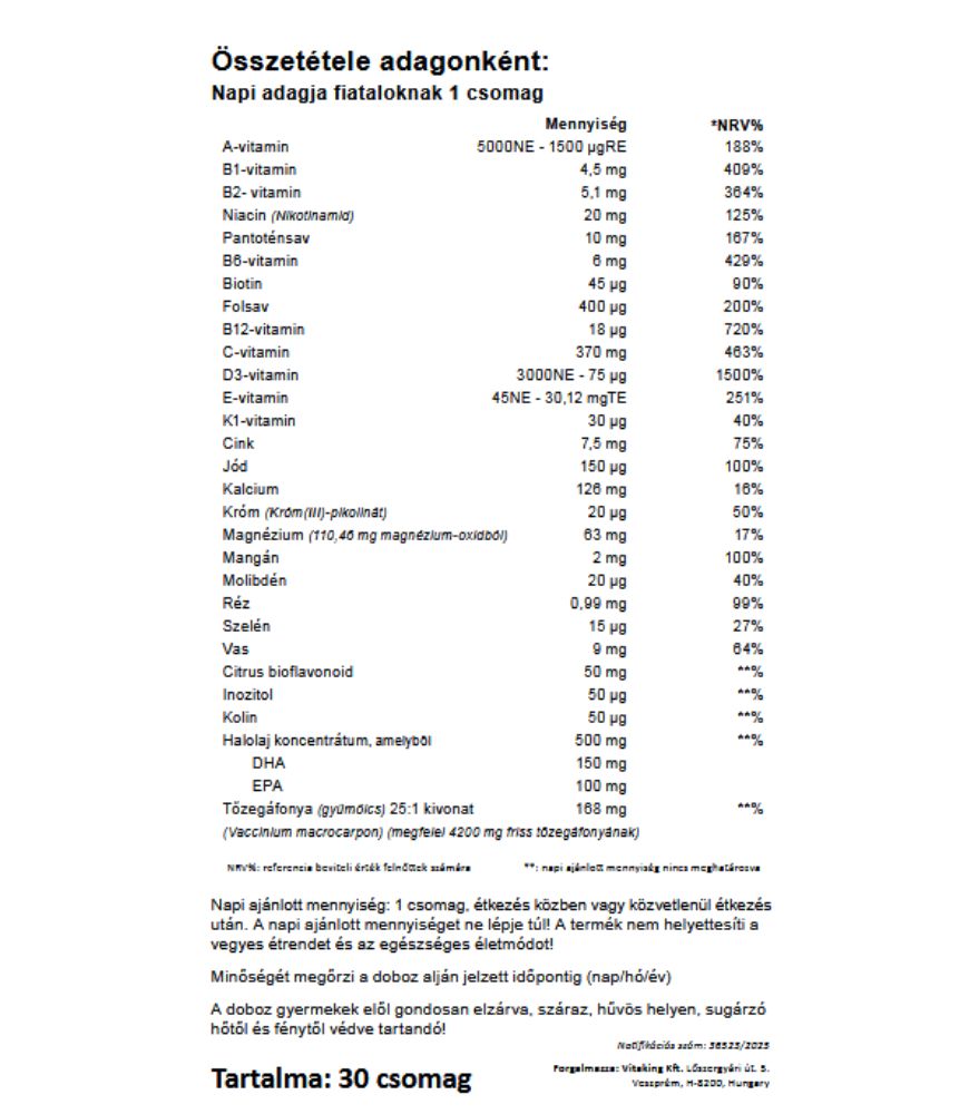 A terméket gyártó Vitaking Kft. GMP (Jó Gyártási Gyakorlat) előírásai szerint működtetett minőségirányítási rendszert alkalmaz, amely biztosítja a gyártási folyamat átláthatóságát, az alapanyagok tisztaságát és a késztermékek megbízható, állandó minőségét.