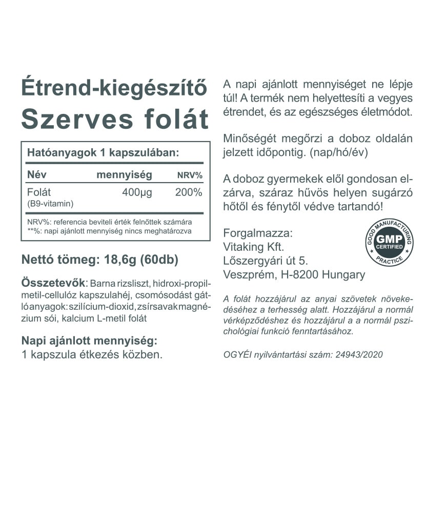 Vitaking Folát 400µg (60 kapszula)