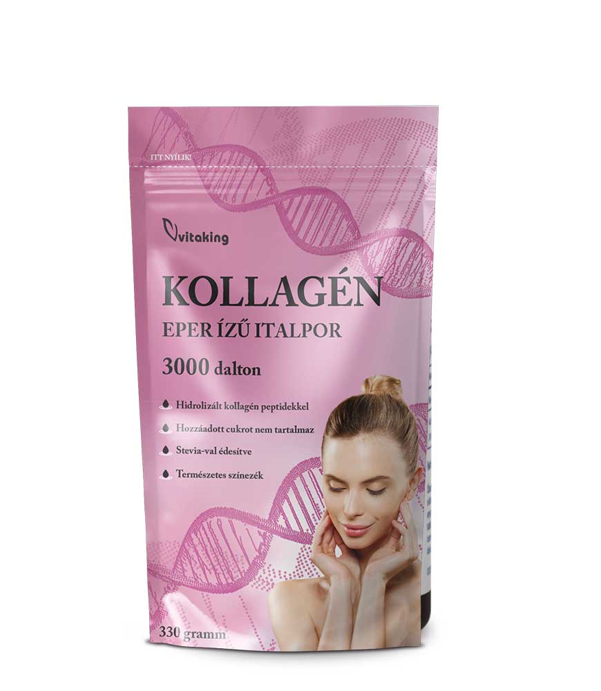Adj egy kis törődést magadnak minden nap! A Vitaking hidrolizált marhakollagén nem csak egészséges, hanem finom is. Minden alkalommal kellemes eper ízével kényeztet, mindezt hozzáadott cukor nélkül. Kellemes édes ízét a sztívia biztosítja. A hidrolizált kollagén gyorsan és hatékonyan hasznosul, míg a termékben található C-vitamin hozzájárul a normál kollagénképződéshez, a cink pedig a haj, a bőr és a köröm normál állapotának fenntar­tásához. Éld át az igazi feltöltődést egy eper ízű élménnyel, ami egyszerre kényeztet és támogatja az egészségedet! Felejtsd el a tablettákat vagy a kellemetlen ízeket.