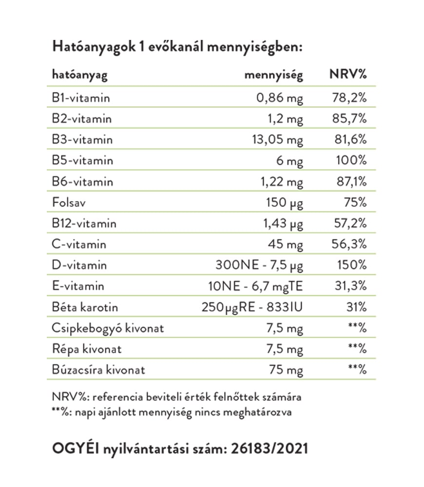 A napi ajánlott mennyiséget ne lépje túl! A termék nem helyettesíti a vegyes étrendet, és az egészséges életmódot.